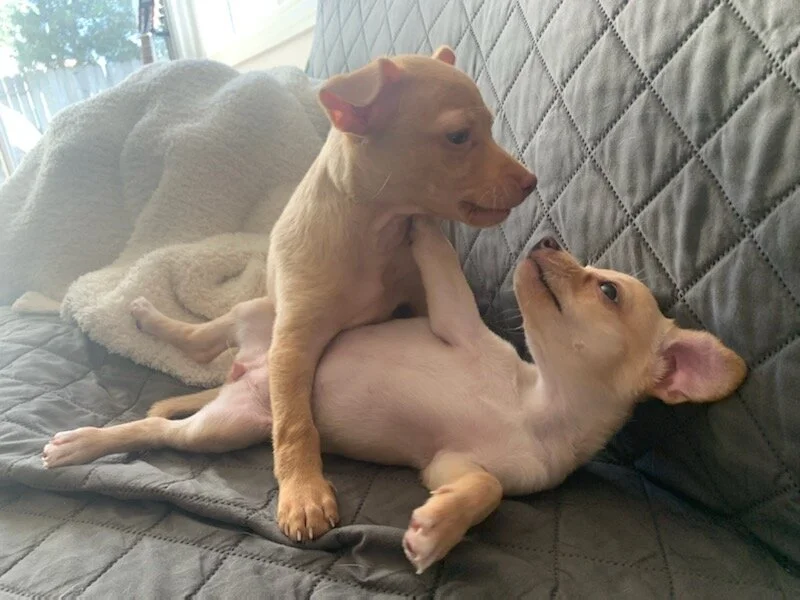 Spunky, playful, happy — they would thrive in homes with a friendly dog role model or plans for continued socialization with friendly dogs. A home with kids 10+ highly recommended given their small size.